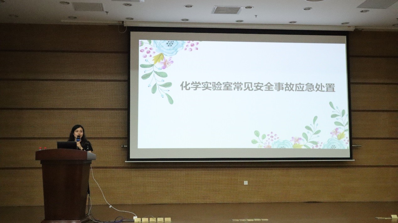 广州化学有限公司科创中心主任史珺作化学实验室安全管理与应急事件处理的专题教育讲座,介绍了化学实验室常见的安全隐患问题、防护体系的建立以及安全问题的应对措施。