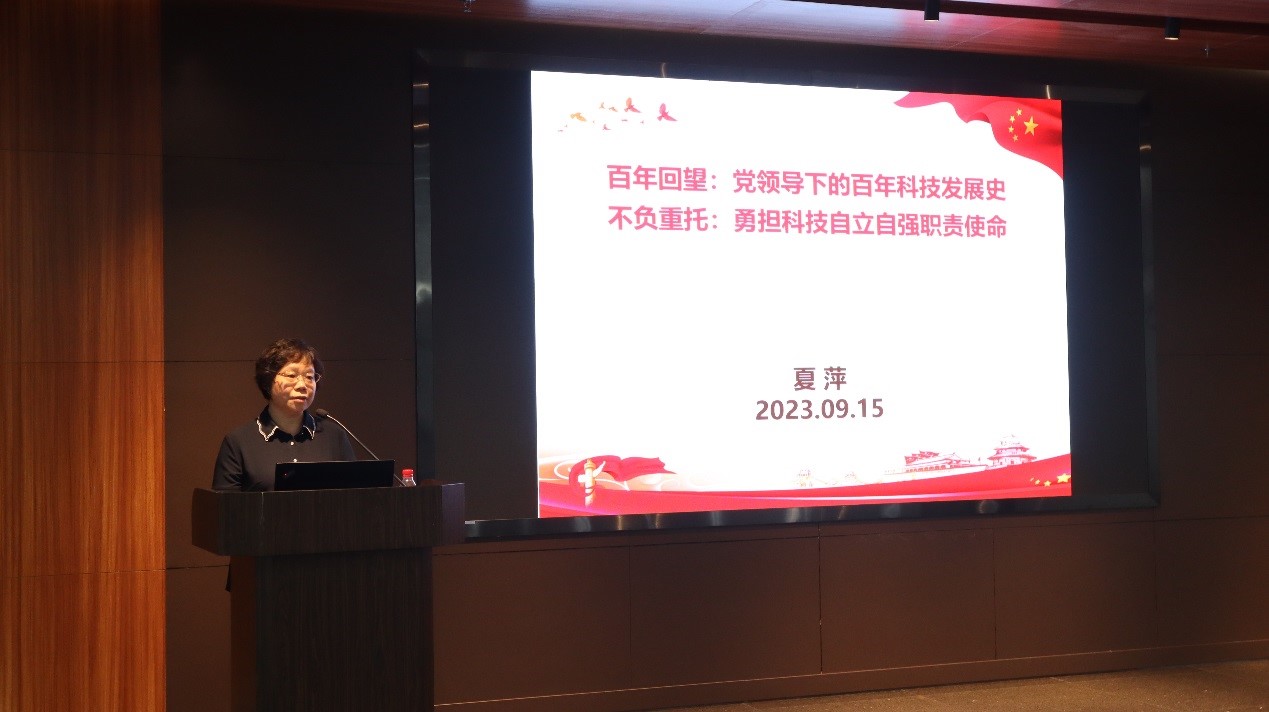 9月15日,为深入贯彻落实党中央、中国科学院学生思政工作部署和要求,落实中国科大“德创计划”要求,研究所党委书记夏萍为全体新生作题为《百年回望:党领导我国科技事业发展史;不负重托:强化国家战略科技力量使命担当》的党课报告。在党课上,夏萍按照时间脉络,以早期科技实践的“星星之火”、延安黄土地上闪耀的科学光辉和向科学进军、新中国科技事业建制化发展为纲阐述了党领导科技事业发展的历史,重点回顾了新中国诞生后中国科学院的成立和发展壮大的历史进程。她以新中国“十二年科技规划”编制和“两弹一星”的研制两个事例切入,说明了中国科学院秉持着“科学为人民”的初心,在新中国主要学科基础和科研体系建立、工业技术、国防科技和地方科技体系的形成和发展中发挥了重要作用,向研究生们传达了热爱祖国、无私奉献,自力更生、艰苦奋斗,大力协同、勇于登攀的“两弹一星”精神,鼓励同学们汲取继续前行的智慧和力量。最后,她也希望作为中国科学院的在学研究生,在当前国际复杂的形势下,不断提高思想认识,深刻领会党和国家事业发展对科技创新的迫切需求,从我做起、从现在做起、从日常学习工作生活做起,把先辈们无私无畏、拼搏奉献的爱国主义精神和科学家精神铭记于心,胸怀祖国、追求真理、勇攀高峰,努力为肩负起高水平科技自立自强重任做好准备。