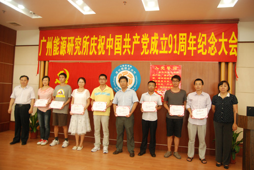 7月4日,中科院广州能源研究所隆重举行庆祝中国共产党建党九十一周年纪念大会。全体职工党员和学生党员参加了会议,会议由研究所党委委员、副所长赵黛青主持。 会议在全体党员高唱国歌声中开始,党委书记马隆龙为全体党员作《中央苏区与苏区干部好作风》的党课。通过回顾了中央苏区的历史、苏区的反腐倡廉问题等,介绍了苏区干部好作风:求真务实、清正廉洁。强调了新时代共产党员应从五个方面来发挥苏区精神:一、坚定信念、励精图治;二、敢闯新路、改革创新;三、深谋远虑、科学发展;四、关注民生、执政为民;五、艰苦奋斗、反腐倡廉。同时还介绍了各个时代的精神,指出作为科研工作者在科研上应发挥载人航天精神和两弹一星精神。党课生动、富有时代精神,使全体党员受到一次深刻的党性教育,激发了广大共产党员坚定信念、实践宗旨、求真务实、奋发有为,为能源所实现“创新2020”规划和“124”发展目标做出新的贡献。 纪念大会上,14名新发展党员在党旗下庄严地宣誓,全场党员也一起重温了入党誓词。 最后,大会对在2011至2012年工作中表现突出的先进基层党组织、优秀共产党员和优秀党务工作者进行了表彰。