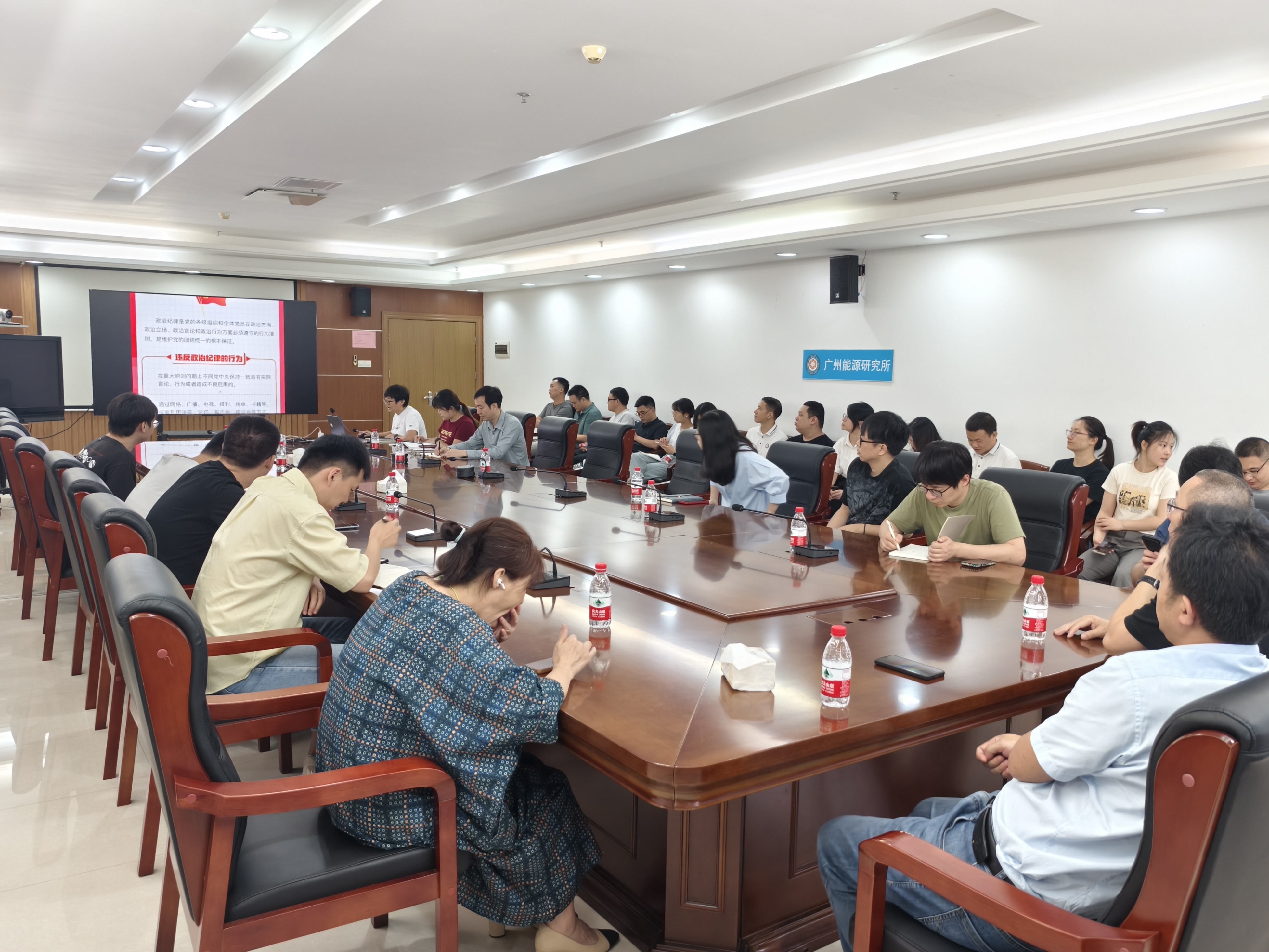 6月11日上午,第五党支部组织召开支部大会,开展党纪学习教育。支部纪检委员林镇荣主持会议。 会上,支部书记顾菁作党的六项纪律“负面清单”党课宣讲,详细介绍了政治纪律、组织纪律、廉洁纪律、群众纪律、工作纪律、生活纪律的定义、内涵和具体规定,带领支部同志原原本本学,逐章逐条学,并结合工作中遇到的相关问题现象,联系实际学,强调纪律是管党治党的“戒尺”,也是党员干部约束自身行为的标准和遵循。 与会同志围绕六项纪律“负面清单”的各项内容和学习体会,开展了“学纪律,促攻坚”大讨论,认为学纪是知纪的基础,明纪是守纪的前提。大家表示通过本次党课理论学习,受到了良好的警示教育,增强了纪律意识,提高了党性修养和理论水平,有助于保障科研工作。