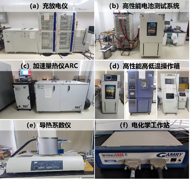 增强型地热系统地下热力过程综合仿真实验系统(国内首台) 电池电化学性能测试系统及电、热性能测试系统 微尺度热流体系统光学显微测试平台 CO2热泵、化学热泵实验平台 高性能计算机机房 科研团队目前拥有先进的电池测试系统、电化学工作站、绝热量热仪、红外热像仪、热扩散系数测试仪等,搭建了专业从事锂电池研究的大容量锂离子电池电热及安全性能研究实验平台,具备电池电化学、热、电、力、气、烟等多参数分析和测试能力。