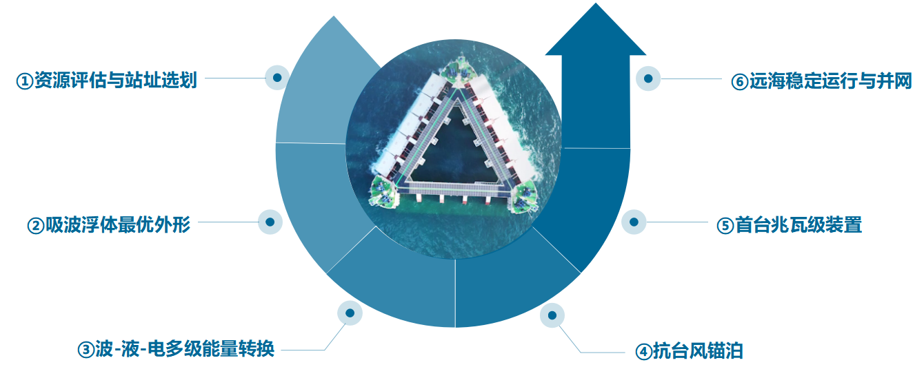 1.国家重点研发项目兆瓦级高效高可靠波浪能发电装置关键技术研究及验证通过验收,取得了资源评估与站址选划、吸波浮体优化外形、波-液-电多级能量转换、抗台风锚泊、首台兆瓦级装置以及远海稳定运行与并网等6项主要研究成果。