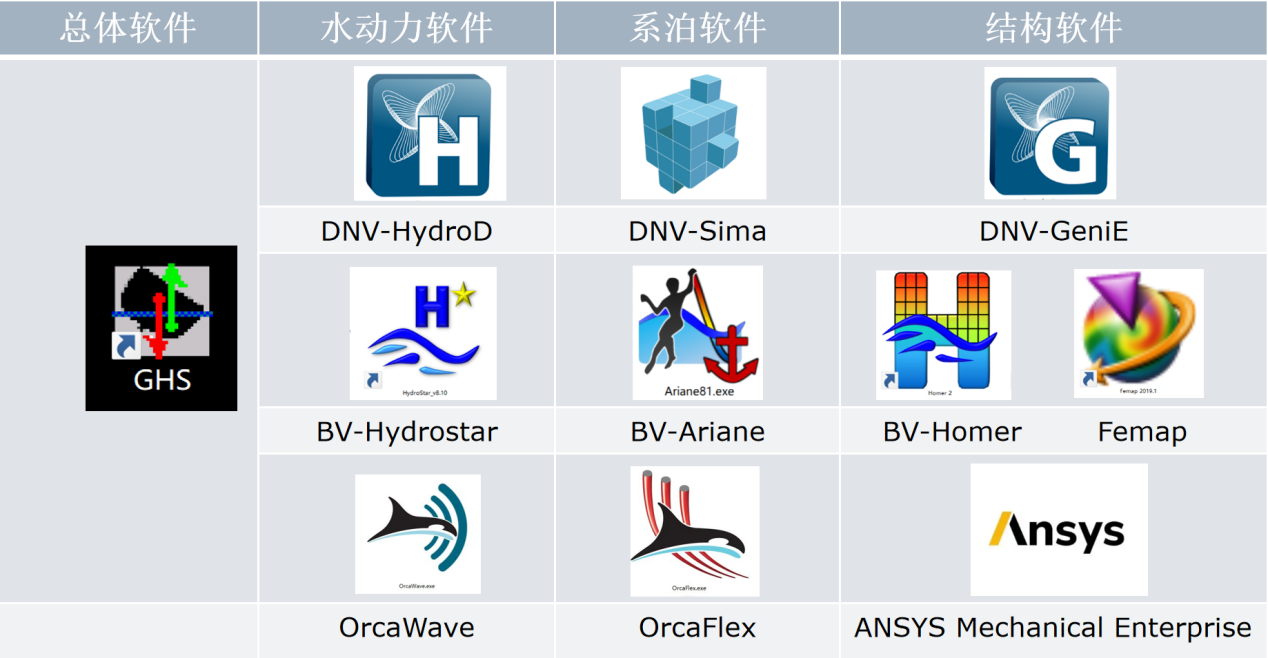 正版商业软件 本团队长期从事海上新能源平台及系泊系统的研究与设计,拥有涵盖总体稳性计算、水动力计算、有限元计算、系泊计算的主流商业软件,具备波浪能装置及海上养殖平台的方案设计、基本设计、详细设计能力。