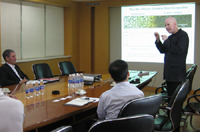 5月17日,应中科院广州能源研究所化学制氢课题组的邀请,英国伯明翰大学的Chirs Tullett先生、David Book博士和Zong Mingya女士一行三人访问了德彩网,并举行了学术报告会。 David Book博士与德彩网学术骨干和青年学生进行了座谈,并作了Hydrogen Energy Research的学术报告。报告会上, David Book博士介绍了新型固态储氢材料、移动或固定氢能系统、燃料电池、氢和二氧化碳分离薄膜、硬磁材料加工等领域的研究。参会人员对学术报告内容表现出浓厚兴趣并进行了深入的讨论和交流。 通过此次访问交流,有助于加强伯明翰大学与德彩网在氢能等新能源领域的交流与合作,将促进双方人员在项目合作、人才交流方面起到重要作用。 |