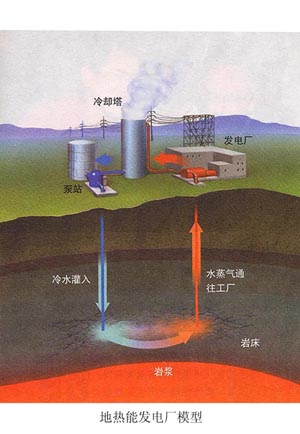 地热发电是地热利用的最重要方式。高温地热流体应首先应用于发电。地热发电和火力发电的原理是一样的,都是利用蒸汽的热能在汽轮机中转变为机械能,然后带动发电机发电。所不同的是,地热发电不象火力发电那样要备有庞大的锅炉,也不需要消耗燃料,它所用的能源就是地热能。地热发电的过程,就是把地下热能首先转变为机械能,然后再把机械能转变为电能的过程。要利用地下热能,首先需要有“载热体”把地下的热能带到地面上来。目前能够被地热电站利用的载热体,主要是地下的天然蒸汽和热水。