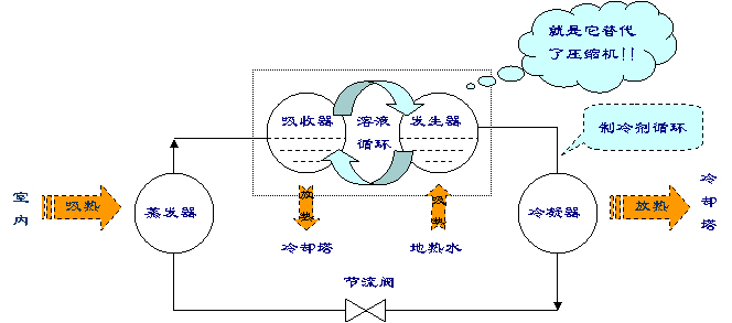 热泵的工作原理与家用电冰箱相同,通过制冷剂(氟利昂)在蒸发器、压缩机,冷凝器和膨胀阀等部件中的气相变化(沸腾和凝结)的循环来将低温物体的热量传递到高温物体中去。只不过电冰箱实际上是单向输热泵,而地热热泵则可双向输热。冬季,它从地球提取热量,然后提供给住宅或大楼(供热模式);夏季,它从住宅或大楼提取热量,然后又提供给地球蓄存起来(空调模式)。不管是哪一种循环,水都是加热并蓄存起来,发挥了一个独立热水加热器的全部的或部分的功能。由于电流只能用来传热,不能用来产生热,因此地热泵将可以提供比自身消耗的能量高3~4倍的能量。它可以在很宽的地球温度范围内使用。在美国,地热泵系统每年以 20%的增长速度发展,而且未来还将以两位数的良好增长势头继续发展。据美国能源信息管理局预测,到2030年地热泵将为供暖、散热和水加热提供高达 68Mt油当量的能量。