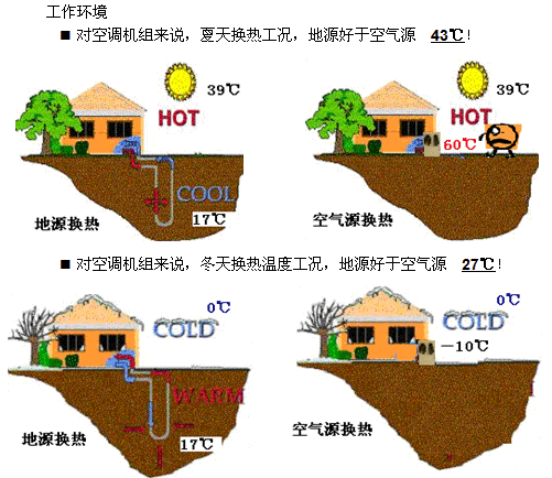 过去,人们只重视对深层地热能的开采,而忽略了浅表层蕴藏的丰富低温地热能,地源热泵技术有效地利用低温地热水、地热尾水、地下水、地表水等低温地热能,通过热泵循环,向建筑物供暖