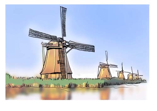 我国使用风车的时间也很早,可追溯到数千年前;而到了宋朝,我国农村使用的风车竟然至今仍属于先进的垂直轴风车。明朝以后,风车的应用更是普遍。国外,应用风车的历史也很悠久。公元前2世纪,古波斯人就有了利用垂直轴风车碾米的先例。11世纪风车在中东就已获得广泛的应用。12世纪,风车从中东传到欧洲,从此揭开了风车最辉煌的一页。16世纪,荷兰人为了扩大国土面积,在沿海地区建立起了大量风车,利用风车排水、围海造地,竟然在西部和北部的浅海和低洼的海滩地上造出了1/4的国土。直到今天,荷兰人仍将风车视为国宝,保留着不少荷兰式的大风车,成为人类文明发展的见证。