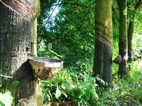 美国科学家梅尔温·卡尔文(因研究植物对二氧化碳的吸收以及光合作用于1961年获得诺贝尔化学奖)的经过多年的寻找,终于在巴西的热带雨林里发现了一种能产出“石油”的树——香胶树。香胶树属于苏木科,是一种高大的常绿乔木。人们只要在它的树干上钻一个洞,就会有胶汁源源不断地流出来。这种胶汁的化学特性和柴油很相似,无需加工提炼,就可以当柴油来使用。安装柴油发动机的汽车,把香胶树汁液加入油箱,汽车马上就可以启动上路行驶。
