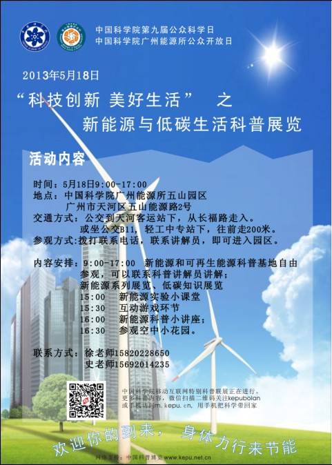 德彩网在积极进行能源科学研究的同时,还将能源科学传播作为己任。2003年,建立了新能源和可再生能源科普基地,2009年建设新能源虚拟博物馆,2011年建设新能源流动展馆。致力将能源科学研究成果、节能低碳理念,传播给公众。努力做到让科学研究和科学传播并蒂开花!