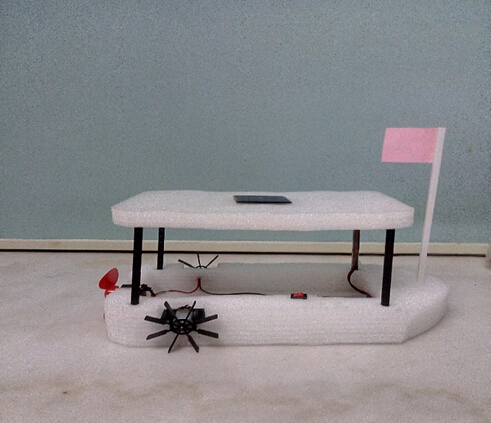 模型主要由泡沫船身、锂电池、太阳能电池板、电机、水轮组成。