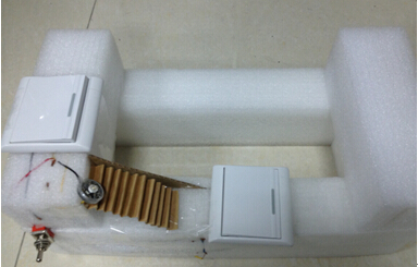 节能双向楼梯灯就是利用双联电路,实现两个开关分别控制灯的开与关。例如在楼下开灯后,上楼之后就可以用楼上的开关关掉,楼上开灯之后下楼亦可关掉灯。虽然是简单的反映日常应用的小模型,但却是节能低碳的身边例证。