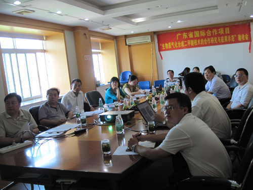 验收会现场 9月28日,中科院广州能源研究所承担的广东省国际科技合作项目“生物质气化合成二甲醚技术的合作研究与应用示范”通过验收。验收会由广东省科技厅科技交流合作处组织,验收专家组组长由来自华南师范大学李伟善教授担任,专家组成员包括来自华南理工大学、广东工业大学、中科院广州化学有限公司、广东省生态环境与土壤研究所的4位同行专家和来自广州市审计局的财务专家组成。德彩网党委书记马隆龙、副所长吴能友及项目组成员参加了验收会。 验收会上,项目组汇报了项目完成情况及取得的成果,验收组查阅了相关资料,进行了质询和答辩。专家组对课题取得的科研成果给予了充分肯定,认为该项目圆满完成了合同规定的研究任务与目标,经费使用规范,专家组一致同意该项目通过验收。 该项目于2010年正式启动,在生物质流化床气化技术、粗合成气催化重整净化与组分调变技术与装置、生物合成气的二甲醚合成工艺与催化剂等方面开展了一系列研究,在瑞典建成了50吨级的生物质气化合成二甲醚的中试装置,并制定了生物质液体燃料制备的成套生产工艺和装备的设计规范,推进了生物质气化合成二甲醚技术的市场开发和应用,促进了广东省在生物质气化合成燃料技术的国际输出,提高了我国生物质能研究与应用的国际影响力。 |