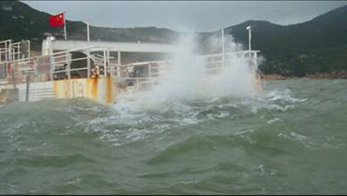 11月10日 “鹰式一号”装置抗击台风浪(望远镜中视频截图)
