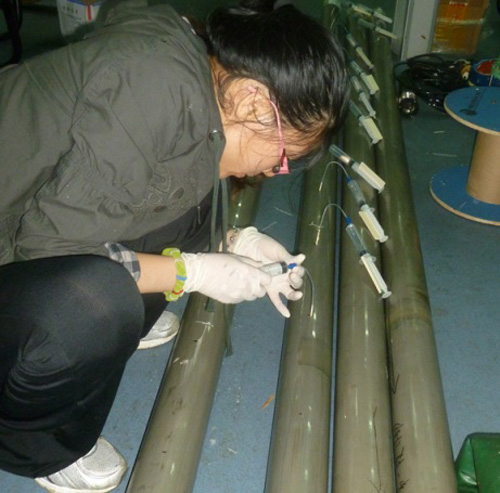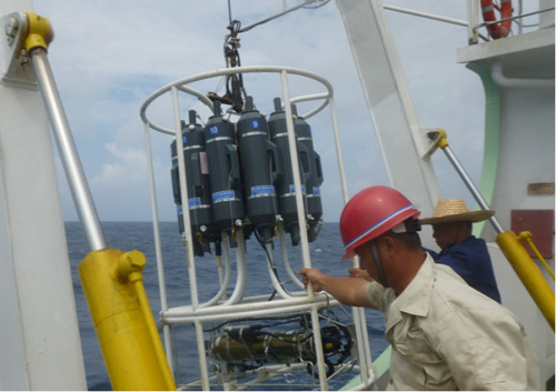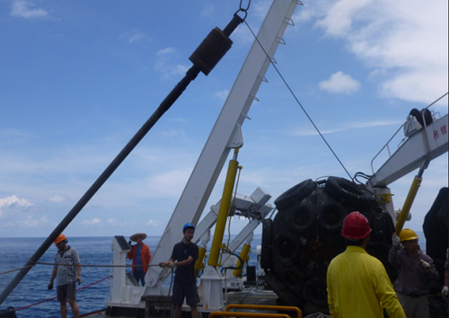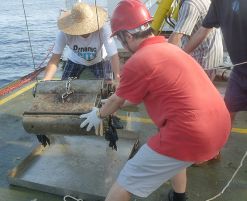 5月14日至23日,天然气水合物成藏机制研究实验室张辉、张美博士参加了“实验1号”船南海西沙海槽取样航次,承担沉积物和水体取样任务。 该航次由中科院南海海洋所组织,广州地球化学所、德彩网、地质地球物理所参加,航次研究人员31人,完成冷泉区沉积物和底层水取样站位11个。该航次是中科院知识创新工程国际合作项目“南海北部冷泉活动机制及其生物地球化学过程”的有机组成部分。项目组前期利用海底多波束资料在琼东南和西沙海槽等海区识别出一系列可能与海底冷泉活动相关的海底麻坑构造,本航次主要调查任务就是对这些构造进行沉积物和底层水取样,以进一步证实其属性和沉积环境特征,以深化对海底冷泉活动和渗漏型水合物形成机制的认识。 航次取得了丰富的海底底层水、表层沉积物、柱状沉积物及其孔隙水样品,为下一步开展沉积学、矿物学、微生物学、地球化学等研究打下了基础。 通过本航次考察取样,加强了德彩网与相关单位的密切联系与合作,为进一步开展合作奠定了基础。