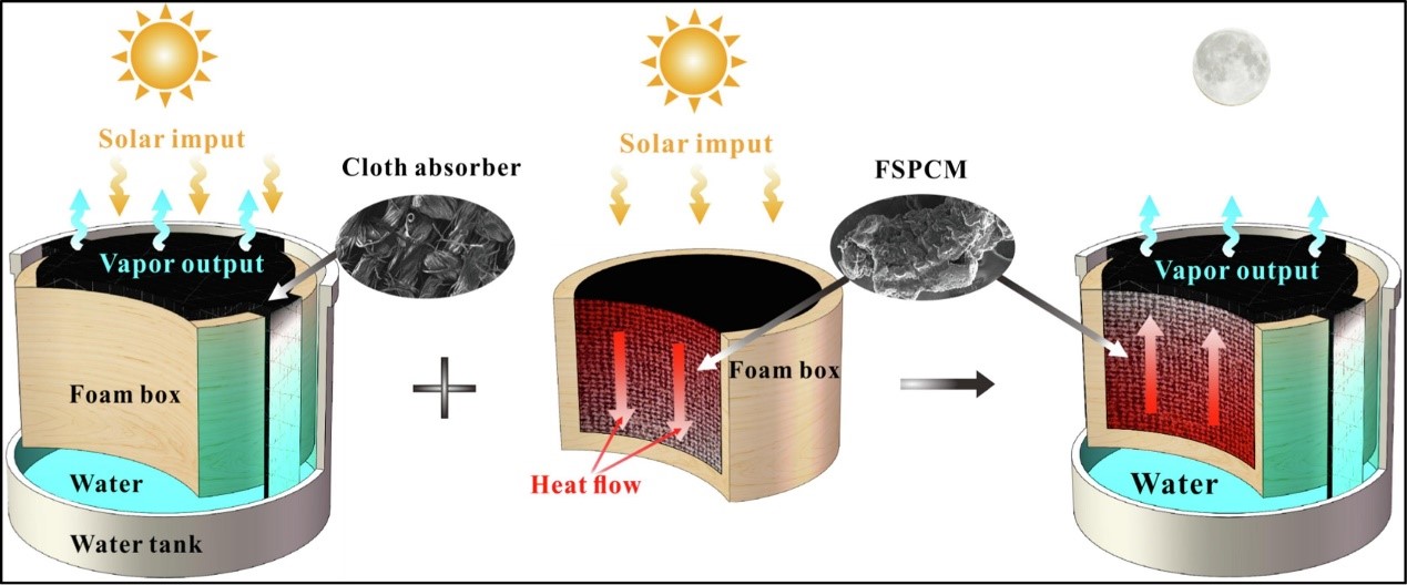 相变蓄热材料强化太阳能界面水蒸发系统工作模式图 |