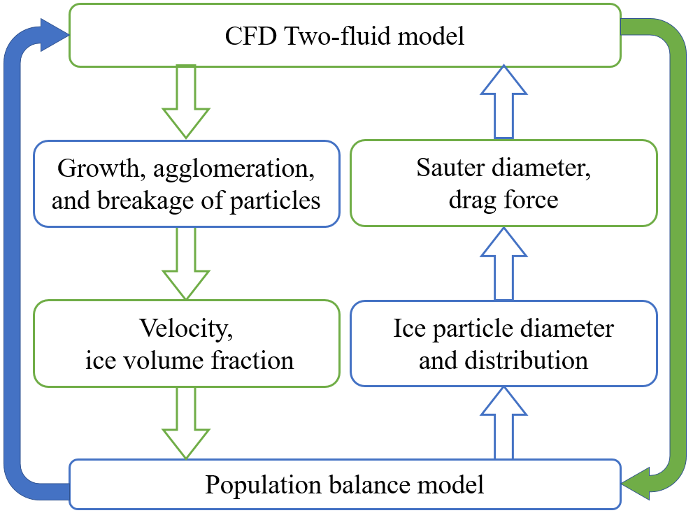 近日,德彩网储能技术研究室冯自平研究员团队在中科院先导专项课题等支持下,在过冷解除过程中冰晶演化研究方面取得进展。相关成果以 Investigation on the evolution of ice particles and ice slurry flow characteristics during subcooling release 为题发表于传热传质领域国际学术期刊International Journal of Heat and Mass Transfer。 冰浆(ice slurry)是一种由冰晶和水或水溶液组成的二元溶液,具有良好的换热特性和独特的流动特性,在冷能储存和运输方面具有显著优势。可控过冷相变技术是实现高效快速连续制冰浆的关键,本研究创新地采用数值模拟的方式研究过冷驱动下冰浆中冰晶粒径的演化规律。储能技术研究室基于该研究搭建的过冷式冰浆实验平台,能够实现高效连续制取冰浆。 研究基于计算流体力学,将数群平衡模型(Population Balance Model, PBM)与Euler-Euler两相流模型耦合,探究了过冷水冰浆在水平直管中的冰粒演化及流动特性。重点研究了由过冷解除导致的冰晶生长,同时还考虑了冰晶的团聚和破碎行为对其粒径的影响。研究发现,相较于团聚和破碎行为,过冷驱动下的冰晶生长作用对其粒径演化最为明显。与此同时,过冷水由过冷态到相平衡态的温度变化与冰粒直径变化规律相符。 本研究成果作为可控过冷相变技术中的重要一环,有望为冰浆制备过程中的促晶器设计、冰堵预防等技术问题提供解决方案。 https://www.sciencedirect.com/science/article/pii/S001793102300162X