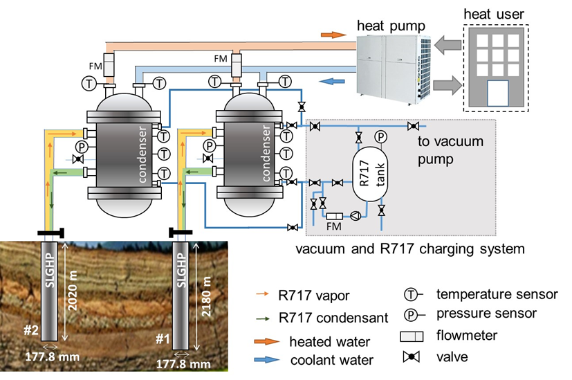 近年来,德彩网先进能源系统研究室提出了利用超长重力热管(SLGHP)开发中深层地热能的技术,并已成功开展了多次现场实验,但迄今还未有公开的实际应用案例。 德彩网与双良节能系统有限公司合作,在太原小店区建造了面向建筑供暖应用的超长重力热管地热开发系统。该系统由相邻的两根长度(分别长2020 m和2180 m)相近的超长重力热管与单个热泵相结合;两口地热井相距30 m,2000 m深度的测井温度均在63℃左右。布置在超长重力热管外壁的光纤测得的热管外壁温度具有显著的均匀性,表明重力热管运行良好。 测试发现,超长重力热管系统运行过程中,较长热管比较短热管所提取的热量多70%。数值仿真分析揭示,较短热管周围地热层的换热基本遵循以岩体为主体的热传导模式,地下水对流的贡献较小;较长热管系统的井筒连通了地下1500 m和2100 m深度的孔渗层,产生了地下水的窜层对流,这一井下传热强化机制造成该地热井较高的热产出。 在此基础上,研究建立了超长重力热管地热系统数值模型并模拟了系统的长时运行过程。数值模拟结果表明,该系统首个采暖季(120天)能够平均输出1MW的热量,可满足约25000 平米建筑的供暖需求;地下水窜层对流降低了超长重力热管地热供暖系统的衰减速率。连续供暖20年后,较短热管系统热输出衰减率为20.4%,而较长热管系统的热输出衰减率仅为6.8%。 相关研究成果发表于能源领域国际期刊Energy,陈娟雯博士和李志斌博士研究生为共同第一作者,蒋方明研究员和黄文博博士为共同通讯作者。该研究得到国家重点研发计划(2021YFB1507300)、国家自然科学基金(52206126,52206287)等项目的资助。 原文链接:https://doi.org/10.1016/j.energy.2024.131521。