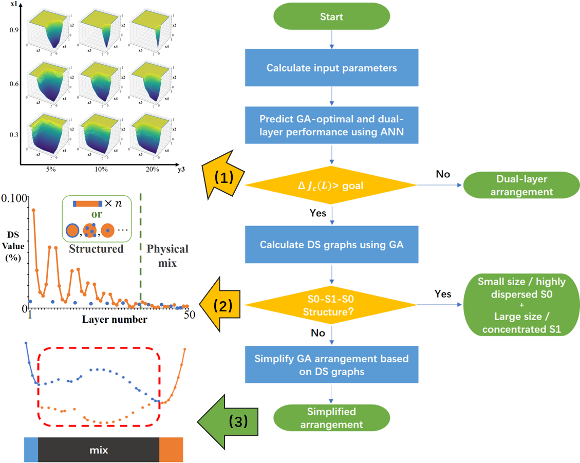 图2. 催化剂替换差的计算方式 在此基础上,该研究搭建了完整的双催化剂体系空间排布优化及简化策略框架(图3),填补了双催化剂在反应器尺度的空间排布优化理论方面的空白。其核心包括:(1)划分优化排列及简单双层排列的适用区间,用于确定是否需要采用优化排列;(2)需要采用优化排列时,通过替换差特征判断是否符合S0-S1-S0规律结构;(3)无规律结构时,采用基于替换差值的简化方法。