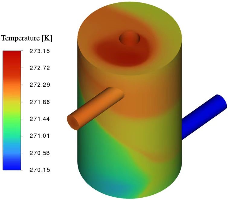流动剪切成核过程示意图 除此之外,科研团队还针对成核后过冷态下的晶核粒径演变规律展开研究。研究团队利用Euler-Euler固液两相流模型与群体平衡模型进行耦合,研究了在不同流速、过冷度、初始含冰率的情况下,水平直管内过冷水冰浆流动过程中过冷解除、粒径生长、粒径分布、压降的变化规律。研究结果表明,在较低的流速和较高的初始含冰率下,过冷解除的更快;在较高的过冷度和较低的流速下,冰晶粒径增长的更快。该研究成果可为过冷水冰浆的“防冰堵”设计、冰浆流动优化等提供理论指导。