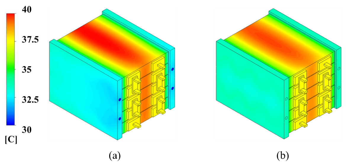 图1 嵌入式相变材料液冷复合冷板内部结构及热管理系统布置方式 科研团队建立了考虑相变材料潜热恢复性能和流动能耗的综合评价方法,对液冷流道的流形、截面形、截面积、通道数和波动振幅进行了全面结构优化,基于优化后的复合冷板结构构建侧面冷却的紧凑式电池模组热管理系统,并提出一种基于时间的提前关断策略,利用多目标优化遗传算法(MOGA),以电池最大温度、电芯单体最大温差和液冷系统能耗为目标参数,对涵盖液冷运行参数、相变材料性能参数和关断时间等5个关键参数进行多参数优化。 结果表明,在最优参数下,电池组3C放电过程中的最高温度为39.70 ℃,最大温差为4.90℃,泵耗相比连续液冷策略降低了80.80%。该研究成果可为高倍率下降低单体电池温差以及热管理系统节能运行提供技术支撑。
