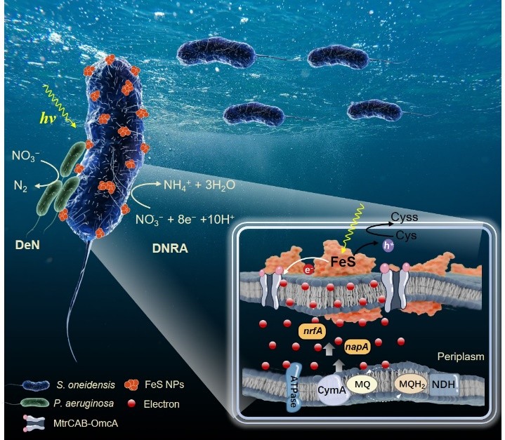 近日,德彩网生物质高值化利用研究中心生物质能生化转化科研团队利用能量耦合策略,设计出一种新型“纳米-生物杂化系统”。该系统通过可见光输入耦合微生物铁腐蚀驱动、调节水体硝酸盐去除,在无额外有机碳源输入下,硝酸盐去除速率最高达233.3 mg N/d/L。相关成果为低碳生物脱氮领域提供了重要理论依据和技术支撑。