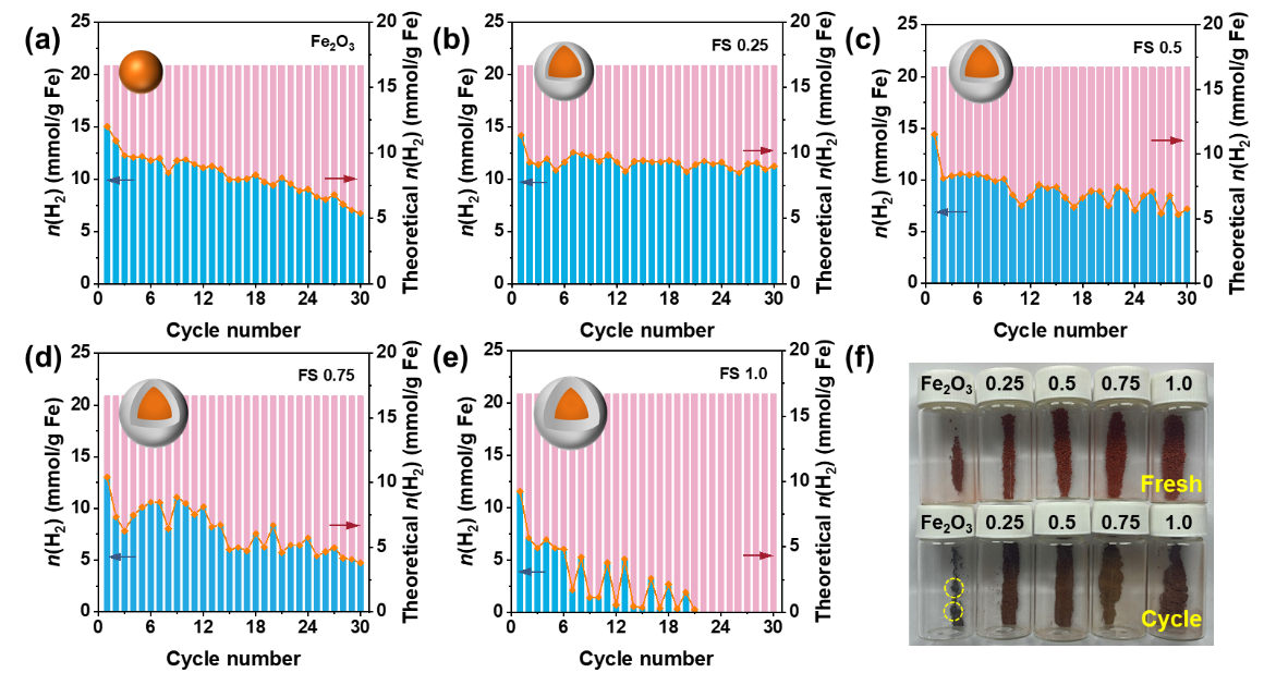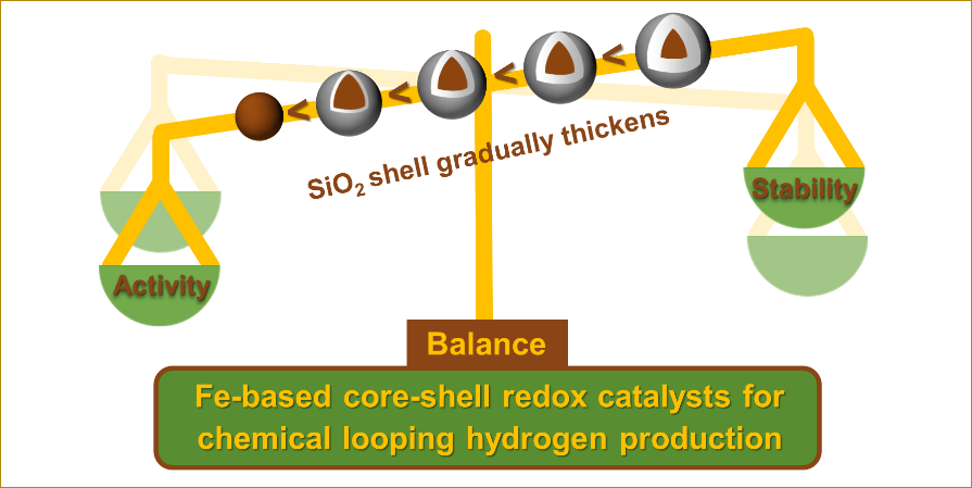 Fe2O3@SiO2核壳结构载氧体氧化还原活性和稳定性之间的“跷跷板”问题