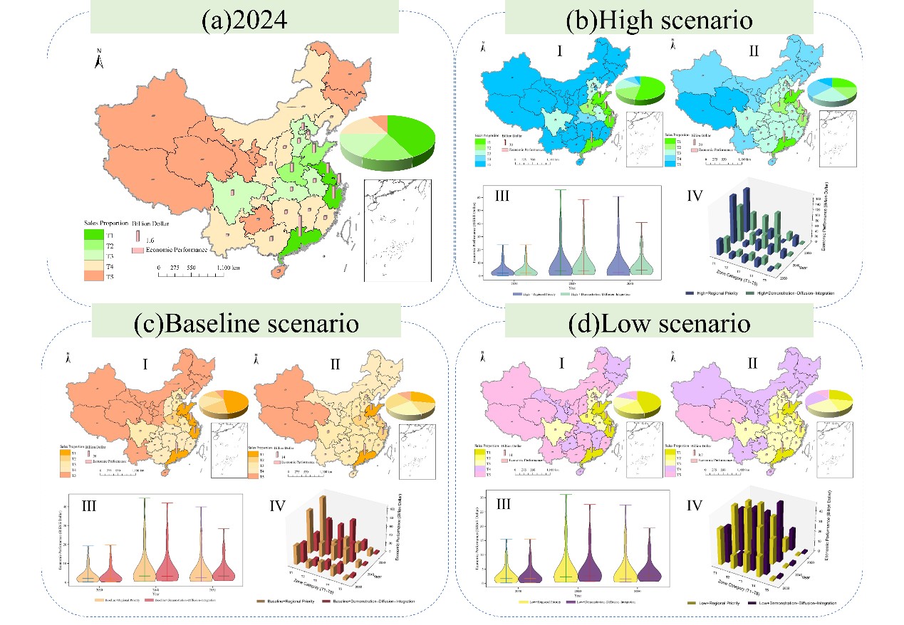 图3:中国动力电池梯次利用与回收情景分析 最后,研究构建了综合成本效益分析模型,考虑了电池的梯次利用寿命、残余价值、回收材料价格和区域政策补贴,动态分析了不同地区电池退役至回收过程的经济效益变化。结果表明,经济发达地区前期回报较快但后期趋稳,西部地区在后期具有较大的经济潜力。团队还分析了不同类型电池的经济表现,提出了分类激励政策,建议政府根据电池类型和区域经济特征实施差异化的补贴与市场引导政策。 本研究不仅为我国建立退役动力电池资源高效利用体系提供了科学依据,也为实现“双碳”目标与构建电池循环经济提供了政策参考。 该研究获得国家自然科学基金、教育部人文社科项目及广州市基础研究基金的资助。研究成果以From Wastes to Resources: The Future of Residential EV Batteries in China through Cascade Utilization, Recycling, and Energy Storage为题,发表于国际期刊Waste Management。 论文链接:https://www.sciencedirect.com/science/article/pii/S0956053X25004192 |