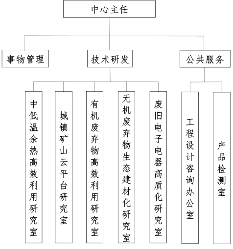 中心组织架构图 中心3年内突破关键技术壁垒,大幅度提高我省 “城镇矿山 ”清洁利用自主创新水平和综合技术能力,形成系列关键技术,建立具有一定规模的高水平研究、生产、应用和培训示范基地,研制具有自主知识产权的“城镇矿山”清洁利用产品,形成相应技术标准,培养相关人才,5年内建立相应产业化基地,培育和带动新兴产业,促进相关产业形成与发展,促进我省“城镇矿山”清洁利用的整体水平大幅提高,部分关键技术和产品达到国际领先水平。