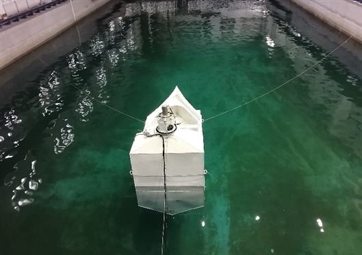 鉴于发电模型研究是开发海试样机中的一个重要过程。德彩网海洋能研究室创新研发了一种单浮体气动式波浪能发电模型。研究团队依据国际上的测试规范,对单浮体气动式波浪能发电模型在国家海洋技术中多功能造波水池进行了测试,得到了规则波下波电转换特性和不规则波下波电转换特性。