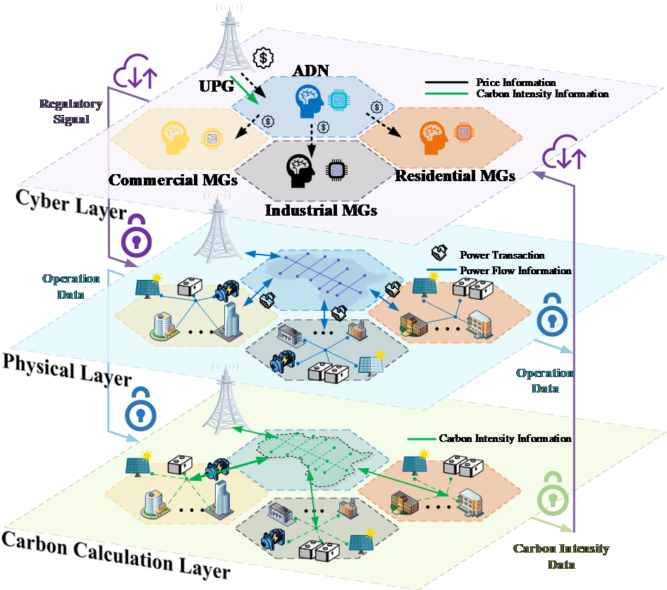 黄玉萍团队构建了一个面向主动配电网与多微电网的协同优化框架,结合时空碳强度均衡方法(STCIEM)和非合作优化策略,分析了多主体协同决策中的碳排放分配问题。他们究通过引入增强动作投影多智能体双延迟深度确定性策略梯度(EAP-MATD3)算法,成功解决了低碳优化中的非凸性问题,优化了决策性能。该算法通过优化智能体目标,解决Actor-Critic(一种强化学习算法)失配问题,在生成符合物理系统约束的最优决策方面,相比传统的安全多智能体深度强化学习方法具有更优表现。