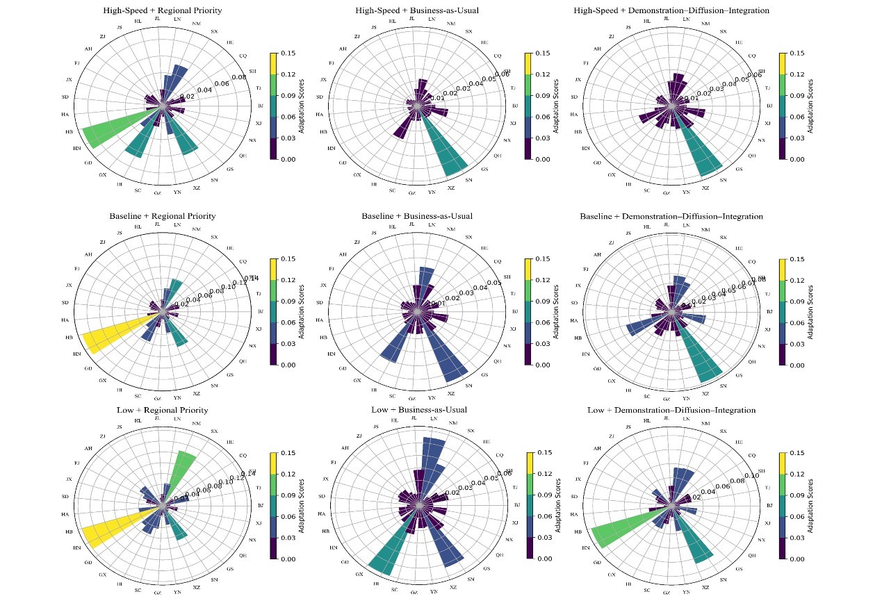 在不同区域扩散情景下动力电池储能适配性的评估。研究团队供图,下同