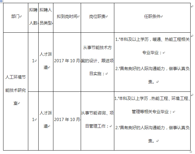 人工环境节能技术研究室招聘启事