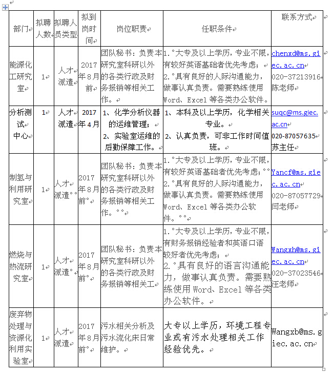 中科院广州能源研究所辅助岗位招聘启事