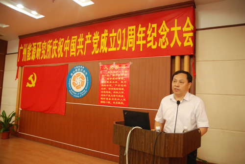 7月4日,中科院广州能源研究所隆重举行庆祝中国共产党建党九十一周年纪念大会。全体职工党员和学生党员参加了会议,会议由研究所党委委员、副所长赵黛青主持。