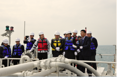 图2. 现场查看100kW鹰式波浪能发电装置“万山号”运行情况