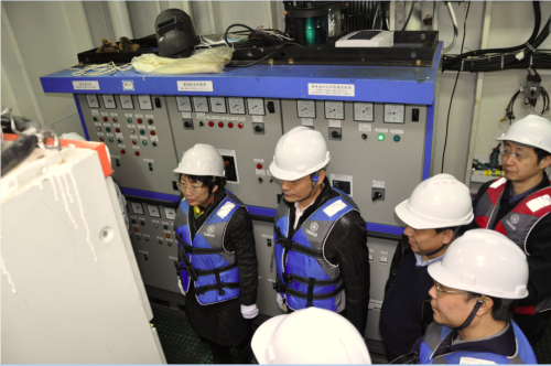 图3. 现场查看100kW鹰式波浪能发电装置“万山号”舱内设备运行情况