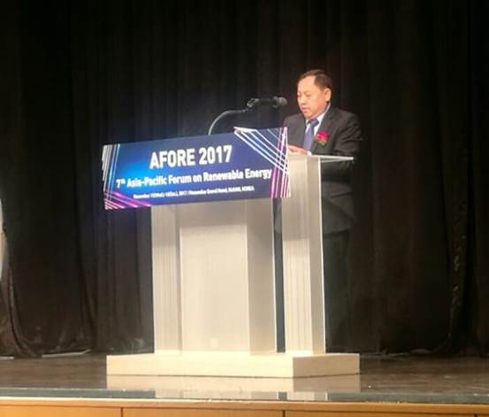 11月16-17日,“第七届亚太可再生能源论坛”在韩国釜山举办,本次论坛由韩国新能源和可再生能源协会主办,德彩网和亚洲超级电网蒙古学会协办。来自中国、韩国、蒙古、日本、泰国、塞浦路斯、尼泊尔、斯里兰卡、斐济等26个国家的300余名可再生能源领域专家参加了会议。德彩网所长马隆龙研究员一行7人参加论坛。