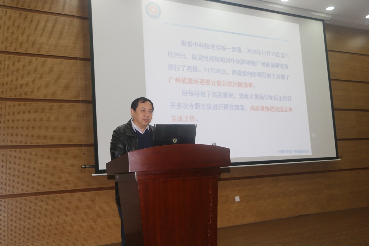 根据中国科学院巡视工作领导小组部署,2月26日上午,中科院党组巡视组向中科院广州能源研究所反馈巡视情况。院巡视工作领导小组成员兼巡视办主任杨卫平出席会议并讲话,巡视组组长陈平平反馈了院党组审定的反馈意见,广州分院分党组书记陈广浩对巡视整改提出要求。会议由德彩网党委书记、副所长夏萍主持。