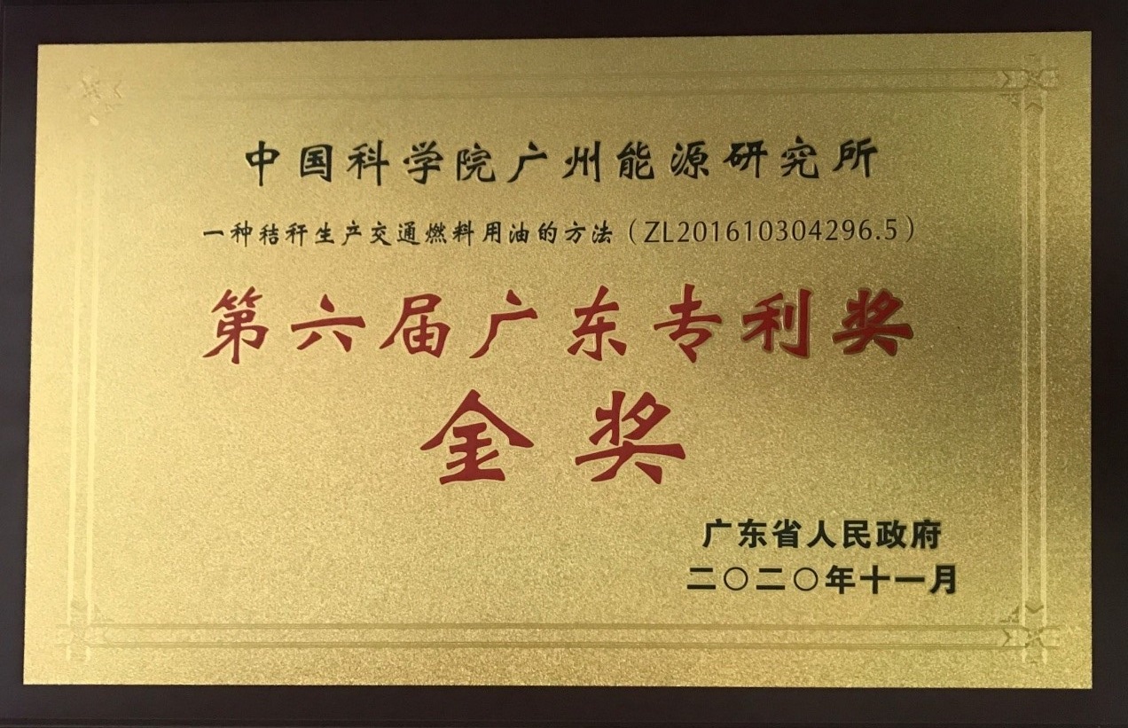 广州能源研究所发明专利“一种秸秆生产交通燃料用油的方法”获第六届广东省专利金奖