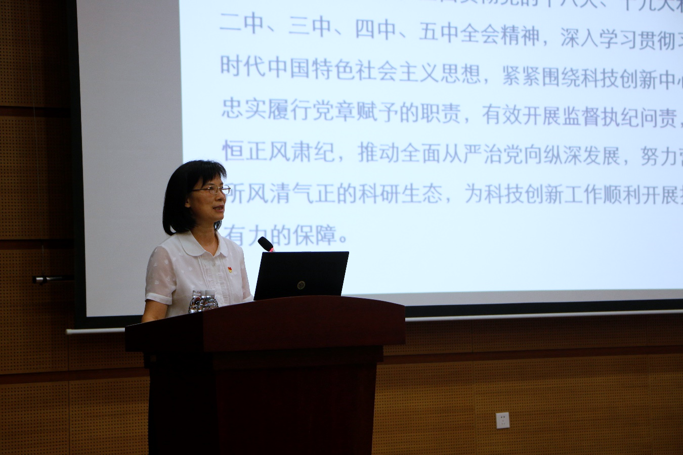 大会在庄严的国歌声中开幕。夏萍代表第八届党委作题为“强化国家战略科技力量使命担当 推动新时代党的建设高质量发展”的工作报告,重点从“加强党的政治建设,为科技创新把准政治方向”、“加强党的思想建设,为科技创新打牢思想基础”、“加强党的组织建设,为科技创新提供强大动力”、“加强党的作风建设,为科技创新营造良好生态”、“加强党的纪律建设,为科技创新守牢纪律底线”、“加强党的制度建设,为科技创新提供制度保障”、“加强群团统战工作,为科技创新凝聚人心共识”“弘扬美德发挥余热,为离退休职工做好服务管理”八个方面,系统回顾了本届党委五年的工作,指出了工作中存在的不足,提出了今后工作的努力方向建议。党委副书记、纪委书记夏群燕代表第八届纪委作题为“忠实履行党章赋予的职责 为研究所创新发展提供坚强保障”的工作报告,从“始终把党的政治建设摆在首位”、“认真落实全面从严治党监督责任”、“强化纪律教育和警示教育”、“加强重点领域监督管理”、“依法依规强化执纪问责”、“加强纪检干部队伍建设”六个方面总结本届纪委工作,指出了工作中存在的主要问题,并对未来工作提出了建议。