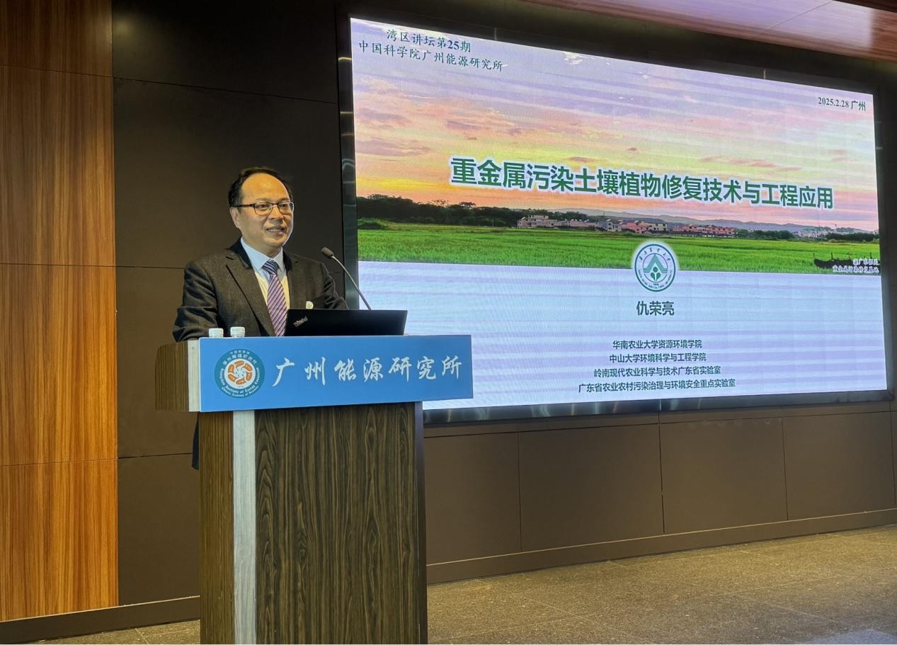 2月28日下午,在中国科学院可再生能源重点实验室、中国科学院天然气水合物重点实验室和广东省可再生能源重点实验室的共同组织下,华南农业大学副校长仇荣亮教授受邀在第二十五期“湾区讲坛”学术报告会上作题为《重金属污染土壤植物修复技术与工程应用》的报告。德彩网所长吕建成、副所长孙永明以及百余名科研人员和研究生参加本次报告会,孙永明主持会议。