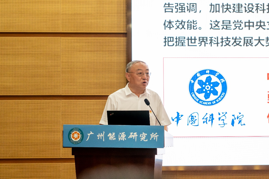 吕建成在党课报告中深刻剖析全球科技竞争格局,指出在产业变革加速演进、大国博弈深度调整的时代背景下,建设科技强国已成为国家发展的核心战略支撑。面对当今世界百年未有之大变局,科技创新已成为各国抢占发展制高点的主战场,唯有牢牢把握科技主动权,才能在未来竞争中赢得先机。他强调,中国科学院作为国家战略科技力量,始终心怀“国之大者”,以“国家队”“国家人”的使命担当,在我国科技事业发展中发挥着重要的引领和支撑作用。广州能源研究所作为中国科学院能源领域的重要力量,需立足自身在新能源和可再生能源领域的技术优势,聚焦能源领域 “卡脖子”难题,系统布局从基础研究到应用示范的全链条创新体系,为“双碳”目标实现和能源安全战略实施提供“广能方案”。