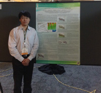 杨睿以“神狐海域天然气水合物的AVO属性分析”(AVO Attribute Analysis for Gas Hydrate in Shenhu Area )为题作了展板展示。该研究成果提出了数个可用于指示天然气水合物赋存的AVO属性,为今后的天然气水合物地球物理勘探增加了更多参考指示剂,提高了天然气水合物的预测精度,为天然气水合物成藏机制的研究提供了基础数据。