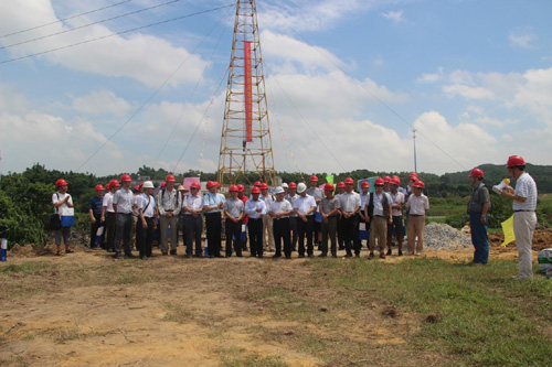 在6月29日和30日室内会议上,多位专家学者就广东省地热勘探历史、勘探现状及开发前景进行了交流和论证,并对在广东进一步开发地热资源需要进行的下步工作提出了建议和部署。7月1日部分专家学者前往阳江新洲地热田进行野外考察,并出席新洲地热田1000米科学钻开钻仪式。胡剑向大会提交了“增强型地热系统热流耦合数学模型构建”的大会论文,并在会上与相关专家进行了交流讨论。