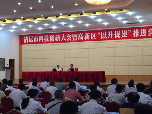4月30日清远市委、市政府在清远国际会议中心召开科技创新大会暨高新区“以升促建”推进会,葛长伟书记、郭峰市长、以及清远市各正处级及以上领导、媒体等参加大会,会议由葛长伟主持,中科院广州能源研究所陈勇院士应邀在大会上作“创新驱动战略与城乡矿山发展”专题讲座。