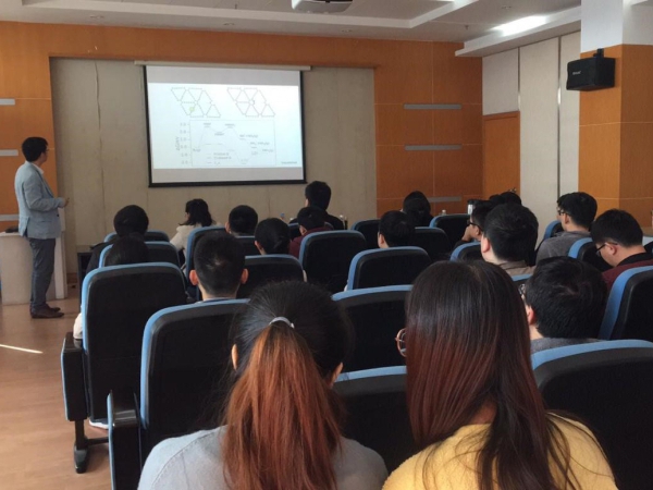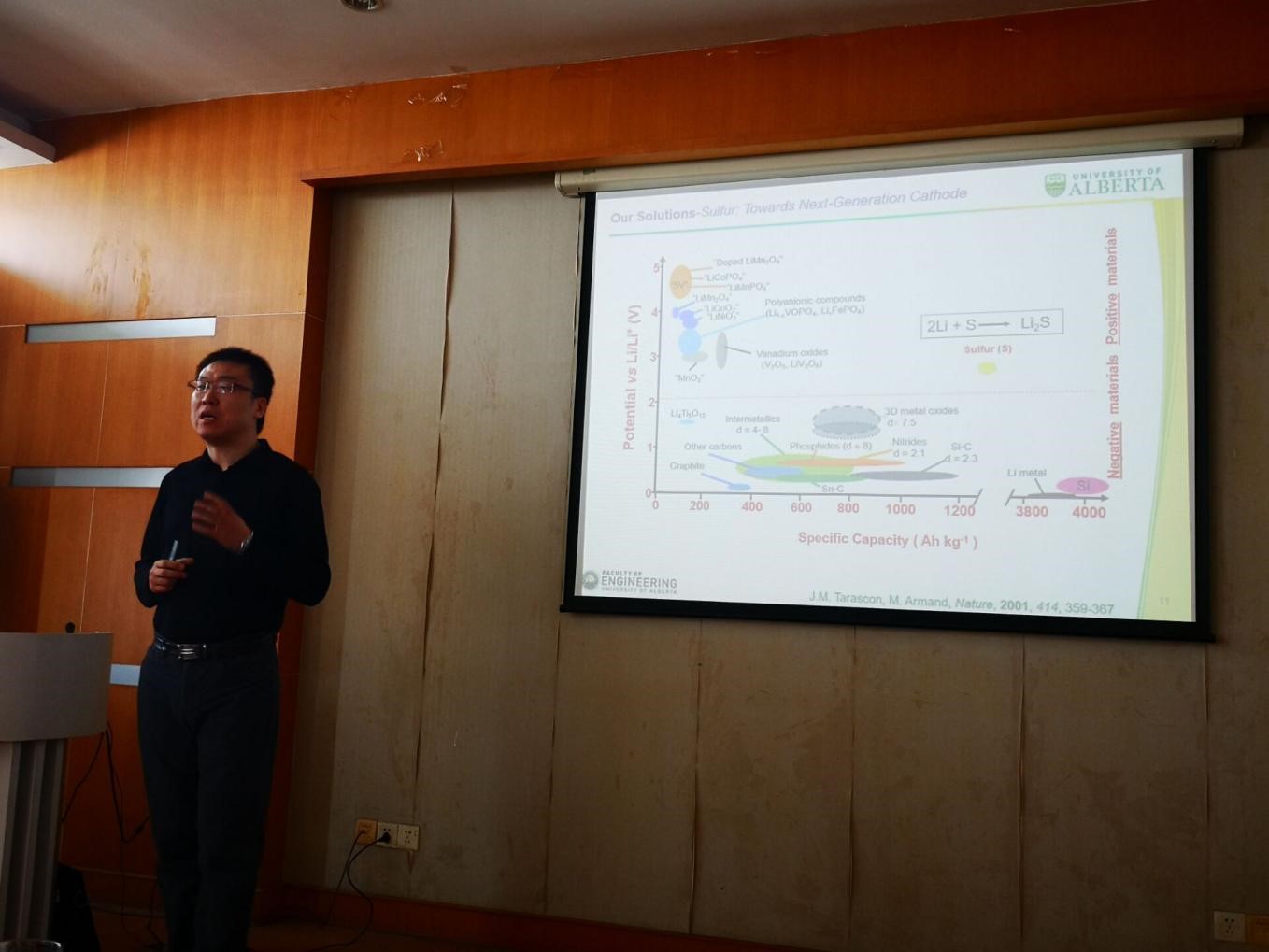 王晓磊助理教授作了题为“先进材料的纳米设计及其在清洁能源技术领域的应用”的学术报告,详细介绍了发展先进能源材料的重要性以及目前锂离子电池的发展现状,并结合自身经历阐述了如何设计先进能源材料的微纳结构,在纳米材料的设计合成方面给予了研究人员很大的启发。