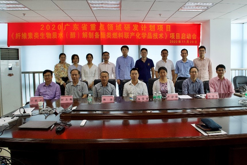 11月20日,广东省重点领域研发计划项目——纤维素类生物质水(醇)解制备酯类燃料联产化学品技术——启动会在广州召开。会上,项目牵头单位广东中科天元新能源科技有限公司董事长余伟俊致辞,项目负责人德彩网庄新姝研究员作实施方案报告。