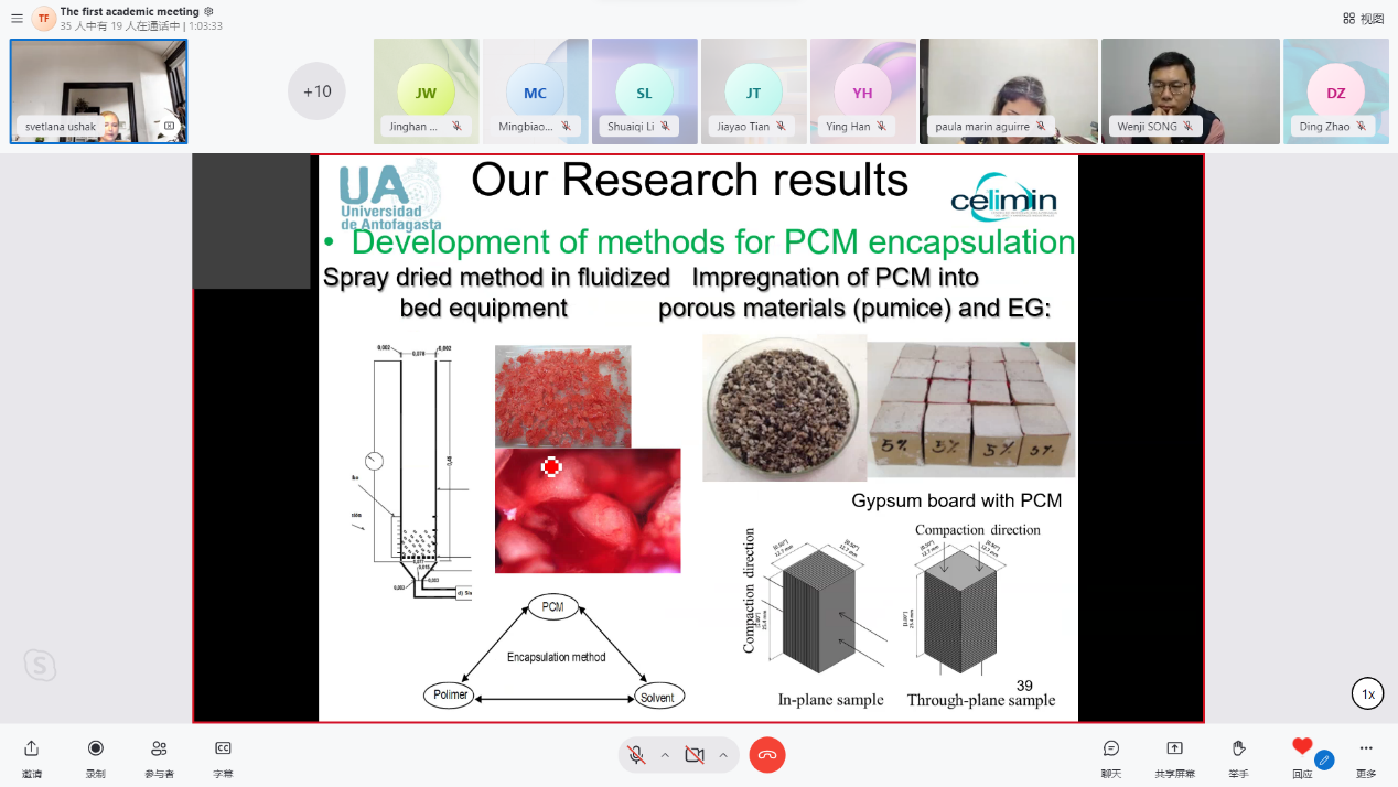 Svetlana Ushak现被聘为科技部外国专家,本次学术报告依托于“高端外国专家引进计划-新型相变材料制备及其在电池热管理中的应用研究”项目,旨在加强中智双方科研团队的沟通与交流,推动形成优势互补、高质量发展的研究布局,为双方后续开展更深层次的合作研究奠定基础。今后,中智双方还将继续以储能技术为主题,推动相关学术交流活动的开展。