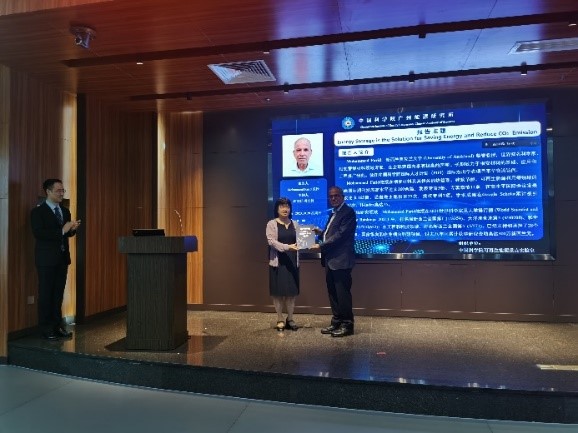 报告会上,德彩网人事教育处处长余颖琳为Farid教授颁发了“中国科学院国际人才计划(PIFI)-国际杰出学者”证书。中国科学院国际交流计划(CAS President’s International Fellowship Initiative, PIFI)是一项旨在建立科学合作和促进全球研究交流的资助计划,其中国际杰出学者项目(Distinguished Scientist)面向在科技领域取得卓越成就且享有声誉的外国杰出专家(学者)。